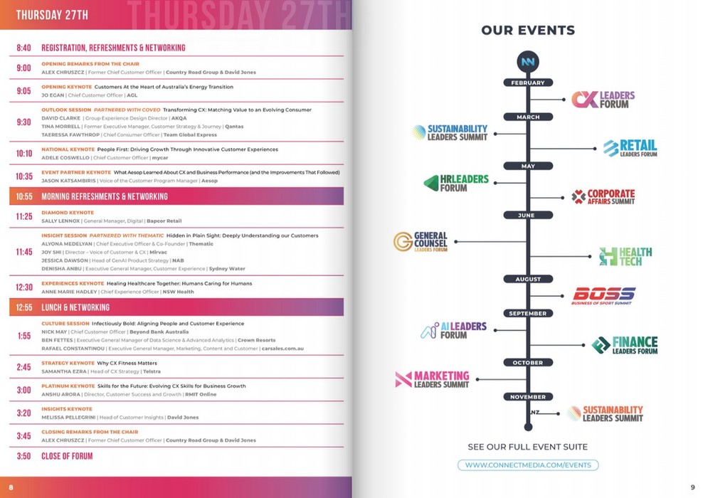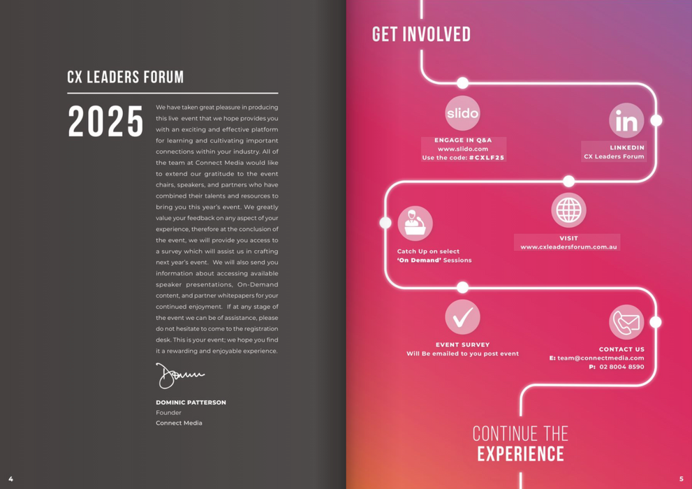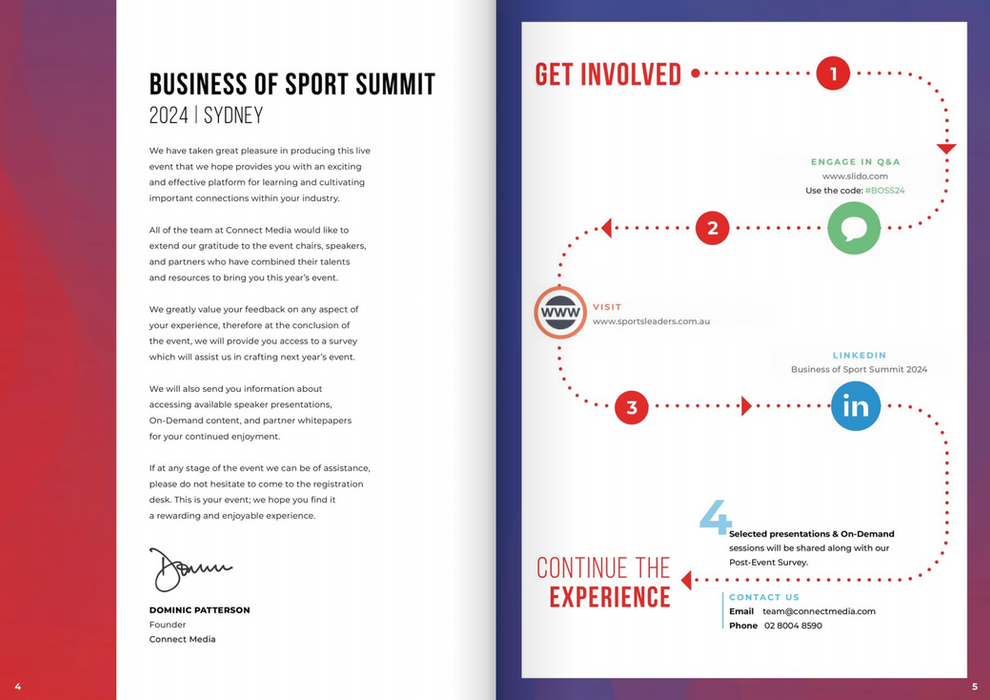 Graphic Design work for Connect Media working across a range of corporate events. Design including social media graphics, event print materials, magazines, prospectuses, websites and logos.